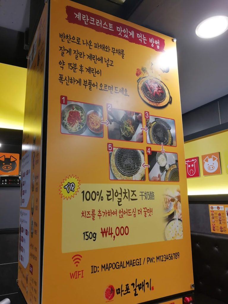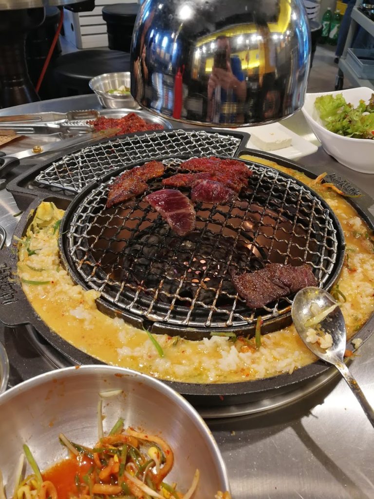 Por isso, voltamos para o centro da cidade e desfrutamos de um incrível churrasco. É uma cadeia de churrasco(MapoGalmaegi também é encontrada em Seul), onde você tem um lugar ao redor da grelha para cozinhar arroz e legumes, mergulhados em um molho de ovo