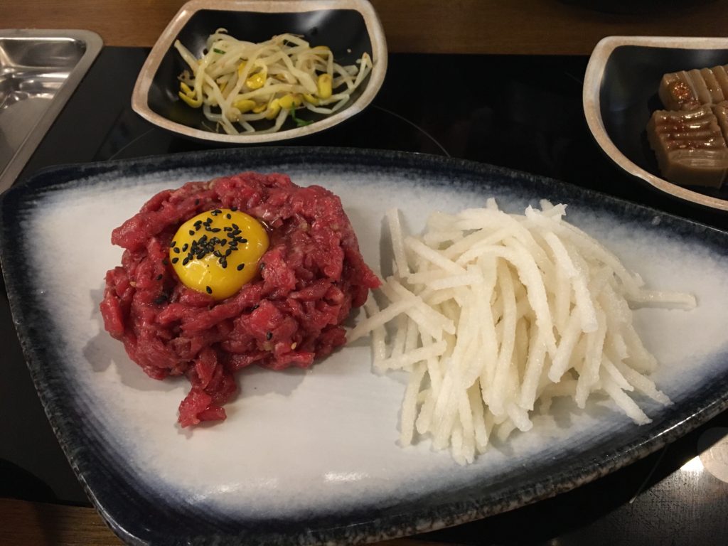 • Os restaurantes tradicionais coreanos em Insadong parecem ótimos porque oferecem pratos tradicionais, que são mais parecidos com o que comemos na França. Além disso, eles têm o cuidado de usar menos malagueta do que o habitual. Digite Insadong Maru no Naver Map e dê a volta pelo bairro (você tem que ir nas vielas, para descobrir as simpáticas casinhas tradicionais). Foi lá que comi tártaro de carne coreano, uma iguaria! Infelizmente, o restaurante não está listado no Naver Map 🙁